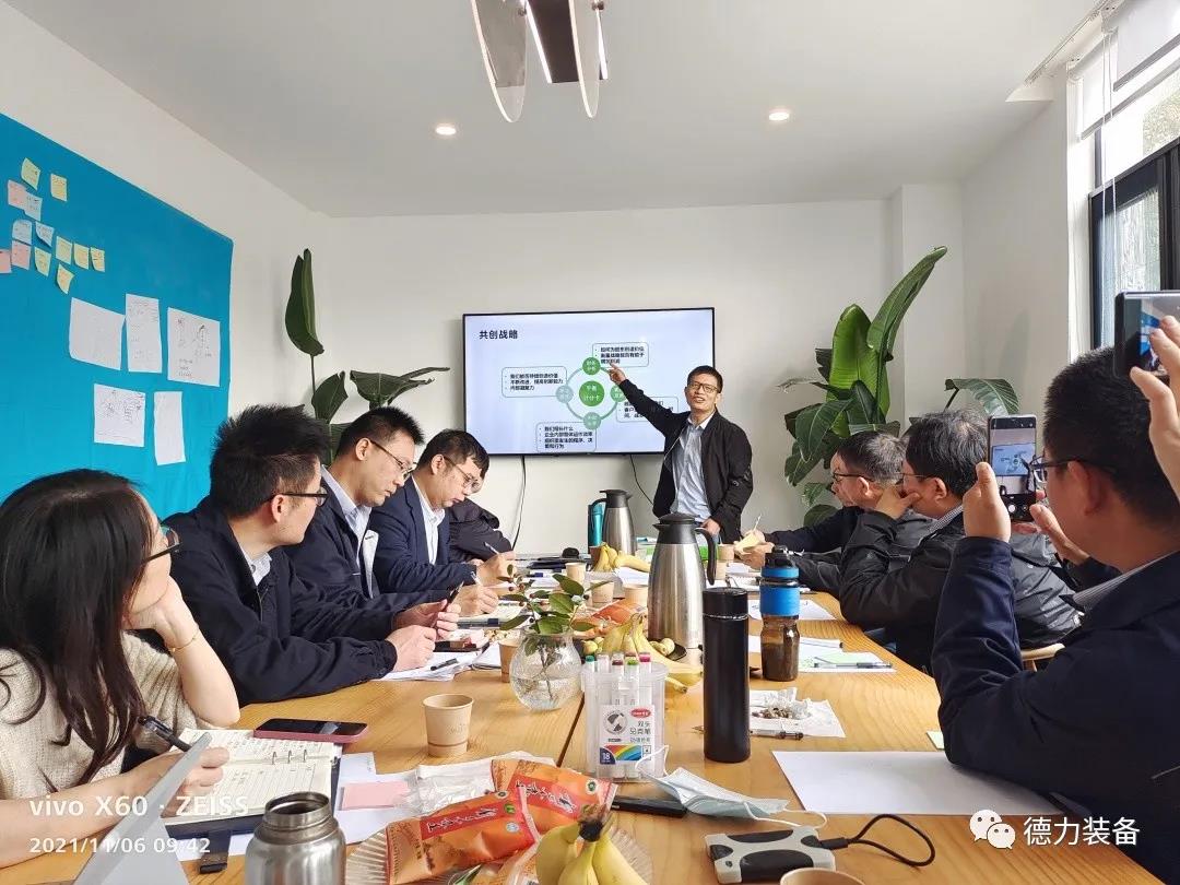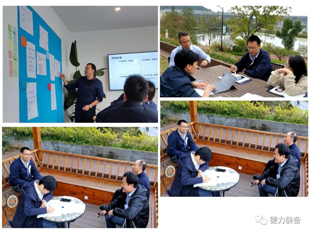 2021年11月5日-6日,浙江德力裝備有限公司在新安江畔召開了德力裝備“戰(zhàn)略共創(chuàng)會”。參加會議的有公司董事長、總經(jīng)理周彬老師,副總經(jīng)理王正魯老師,總工程師廖曉平老師,財務負責人梁瑛老師以及各部門負責人,大家一起集思廣益,共創(chuàng)戰(zhàn)略規(guī)劃,共謀公司未來藍圖。 會議從拉近彼此距離,打開心扉的游戲開始。與會人員逐一分享了自己的家庭情況、性格特點、喜歡怎么相處以及對本次“戰(zhàn)略共創(chuàng)會”的期待,增強了感情,加深了了解,增進了互信。 會中由周彬老師總結了德力裝備“十三五”取得的成績,介紹了“十四五”的規(guī)劃綱要。他指出公司正處在一個新的發(fā)展階段,要準確把握國內(nèi)外政治、經(jīng)濟形勢和行業(yè)發(fā)展趨勢,統(tǒng)籌規(guī)劃后五年的工作,希望通過這次“戰(zhàn)略共創(chuàng)會”真正實現(xiàn)全員目標一致、思想一致、行動一致。 本次“戰(zhàn)略共創(chuàng)會”的主題是“團隊融合,戰(zhàn)略共創(chuàng)”,提升核心管理團隊的凝聚力,研討公司“十四五”戰(zhàn)略目標,明確發(fā)展方向和行動措施。 經(jīng)過激烈的共創(chuàng)討論,每位成員各抒己見,最后由各組代表圍繞問題依次上臺詳解輸出共創(chuàng)結果。期間,王正魯老師表示公司要做長遠布局、系統(tǒng)能力提升、思維升級、建立相應機制,圍繞“做專、做精、做特、做新”的發(fā)展理念,主業(yè)樹品牌,創(chuàng)新求發(fā)展。 公司董事長、總經(jīng)理周彬老師表示,在宏觀政策調(diào)控下,行業(yè)正在進行一次大洗牌,公司確定了“成為國際著名的高端裝備智造商,整體方案解決者”愿景目標,在提升產(chǎn)品品質(zhì)、加大品牌建設的同時更要提升產(chǎn)品檔次。“十四五”時期是德力裝備實現(xiàn)改革創(chuàng)新、轉型升級的關鍵發(fā)展時期,要加強品牌建設,做好新市場的開發(fā);著重開拓高端市場和國外市場;注重新產(chǎn)品的開發(fā)引進,走“專、精、特、新”發(fā)展之路,重點突破“裝備+”產(chǎn)品研發(fā)。做好人才引進,員工培養(yǎng)和團隊建設工作;打造德力人才高地;梳理工作流程,實施精益管理。通過務實、高效的工作,把德力做成一個具有高技術含量的,有品牌影響力、有價值的企業(yè)。