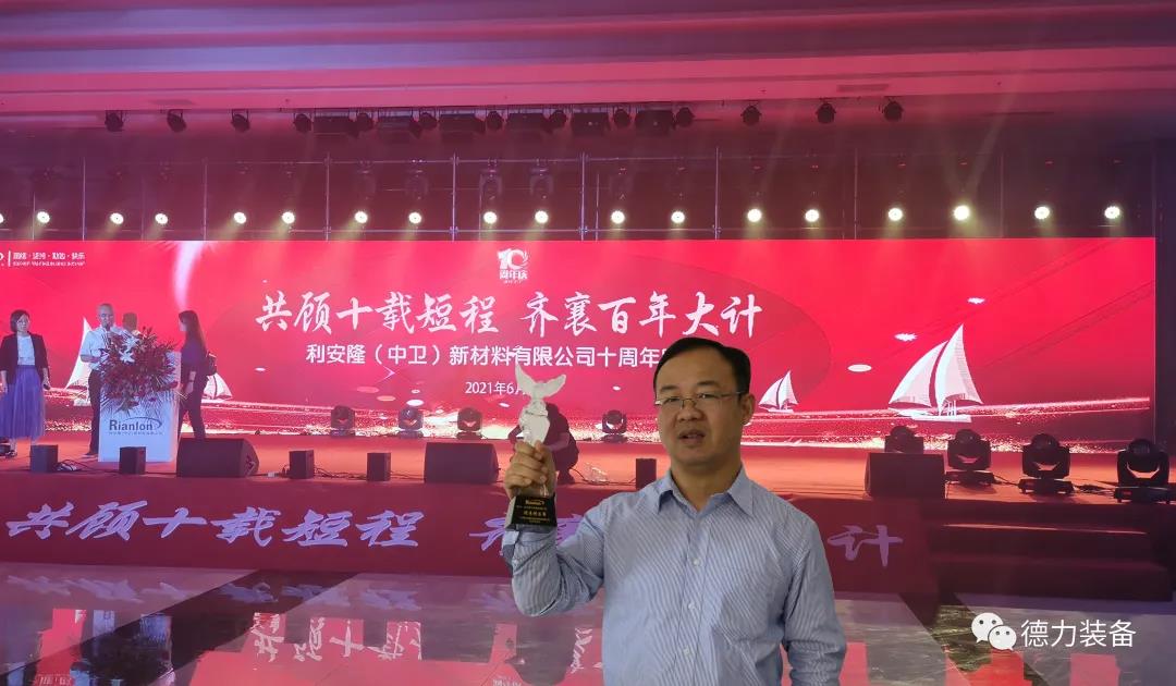 2021年6月16日,公司總經(jīng)理周彬老師和業(yè)務(wù)經(jīng)理潘賢軍老師應(yīng)邀參加利安隆(中衛(wèi))新材料有限公司十周年慶典。 受邀參加本次慶典的是利安隆集團從自全球三千六百多家用戶、供應(yīng)商和合作伙伴中精選出來的五十家供應(yīng)商代表和五十家用戶、合作伙伴代表共一百家企業(yè)參加。浙江德力裝備有限公司作為唯一受邀的非標(biāo)壓力容器生產(chǎn)企業(yè)列席本次活動,并在大會上授予利安隆“優(yōu)秀供應(yīng)商”稱號(僅6家企業(yè)獲得此榮)。 利安隆董事長李海平老師說:一個優(yōu)秀的企業(yè)必須要有一批優(yōu)秀的供應(yīng)商來支撐,我們非常珍惜這些優(yōu)質(zhì)供應(yīng)商資源,我們要與你們建立戰(zhàn)略合作伙伴關(guān)系。 利安隆運營副總裁韓伯睿老師說:利安隆與德力的合作關(guān)系已持續(xù)十余年,利安隆天津、寧夏、浙江、廣東、河北和錦州六大生產(chǎn)基地都有德力的產(chǎn)品,我們對德力產(chǎn)品的質(zhì)量、價格和服務(wù)都非常滿意。 利安隆中衛(wèi)基地總經(jīng)理熊昌武老師說:中衛(wèi)基地絕大部分核心設(shè)備都來自德力,德力能保質(zhì)保量按時交付,就是對中衛(wèi)項目建設(shè)最大的支持。 公司總經(jīng)理周彬老師表態(tài)說:新和成和利安隆都創(chuàng)辦于1988年,都由校辦企業(yè)轉(zhuǎn)制而來,內(nèi)部都推崇老師文化,所以雙方有著天然的親近感和信任感。和利安隆一起合作的十多年里,雙方溝通非常順暢,合作也非常愉快。非常感謝利安隆對德力的信任與肯定,也非常真切地希望雙方能結(jié)成戰(zhàn)略合作伙伴關(guān)系。未來德力會不斷努力提升自己,為利安隆提供更好的產(chǎn)品和服務(wù),為百年利安隆建設(shè)盡綿薄之力。